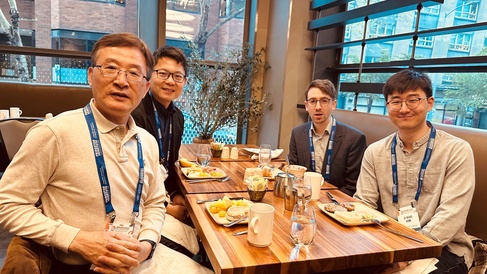 Pictured are (from front left, clockwise), Prof. Quanxi Jia (Judith’s long term collaborator, formerly Los Alamos and now SUNY Buffalo) who is coming on sabbatical as a Trinity visiting fellow in summer 2024, Prof. Robert Hoye (Oxford) who is now also collaborating with Jia via a new EPSRC-NSF grant that we have, Dr. Markus Hellenbrand and Ji Soo Kim, the latter from the group and presenting their work on resistive and ferroelectric switching.