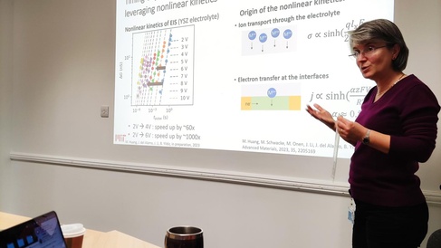 We heard a very interesting presentation by Prof. Bilge Yildiz, visiting from MIT, about controlling ion movement in solids for applications in neuromorphic computing. By moving ions into and out of the channel of a transistor structure, the channel conductivity can be varied gradually by several orders of magnitude, which is very promising for implementing synaptic functionalities.